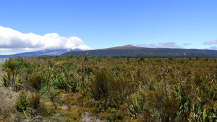 Strahlender Sonnenschein begrüßt uns nach der kalten Vollmondnacht. Unser erstes Ziel heute sind der Tokaanu Thermal Walk an den Hotwater Pools. Ganz allein sind wir im Strauchwald, links und rechts ab und zu ein kleiner, heißer Pool oder ein Blubbern, das die vulkanische Aktivität verrät. Aus Spalten und kleinen Löchern kommt heiße Luft oder heißes Wasser. Umrandet ist das ganze von weiß blühender Besenheide, Harakeke-Büsche und Caggage Trees. Am Ende der Loop ein größerer Weiher mit gelbweißen Algenpolstern, die in der Sonne grell leuchten. Ein schöner interessanter Spaziergang am Morgen.