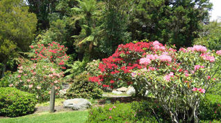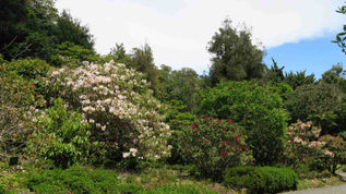 Also fahren wir durch den schönen Wald wieder abwärts und biegen unten zu einem der drei bekannten Gärten der Region ab. Wir besuchen den Pukeiti Garden, der für seine vielen Rhododendren berühmt ist. Hoffentlich blühen noch ein paar Nachzügler, denn in den Hamilton Garden war die Saison schon vorbei.